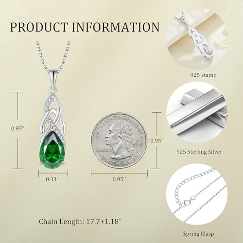 JO WISDOM Celtic Knot Infinity Necklace 925 Sterling Silver 8 * 12mm Birthstone Gemstone Pendant with 18 Inch Chain Necklace Jewelry for Women 4