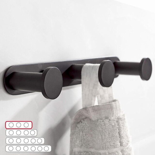 Robe Hook  Wall Mounted with 3 or 4 or 5 or 6 Hooks New Design Stainless Steel Bathroom Painted Finishes Black 1pc 3