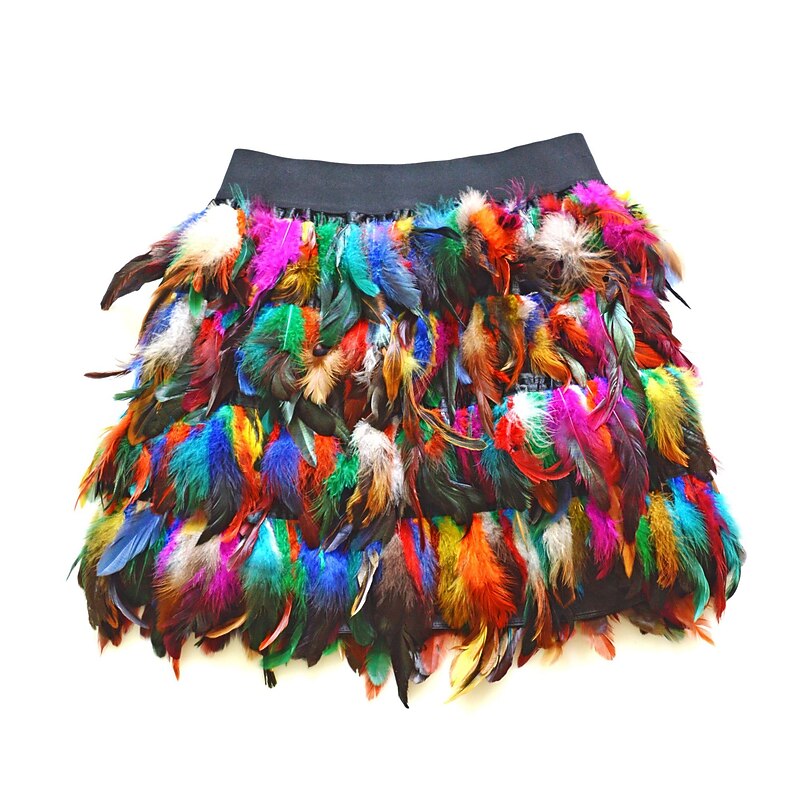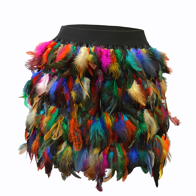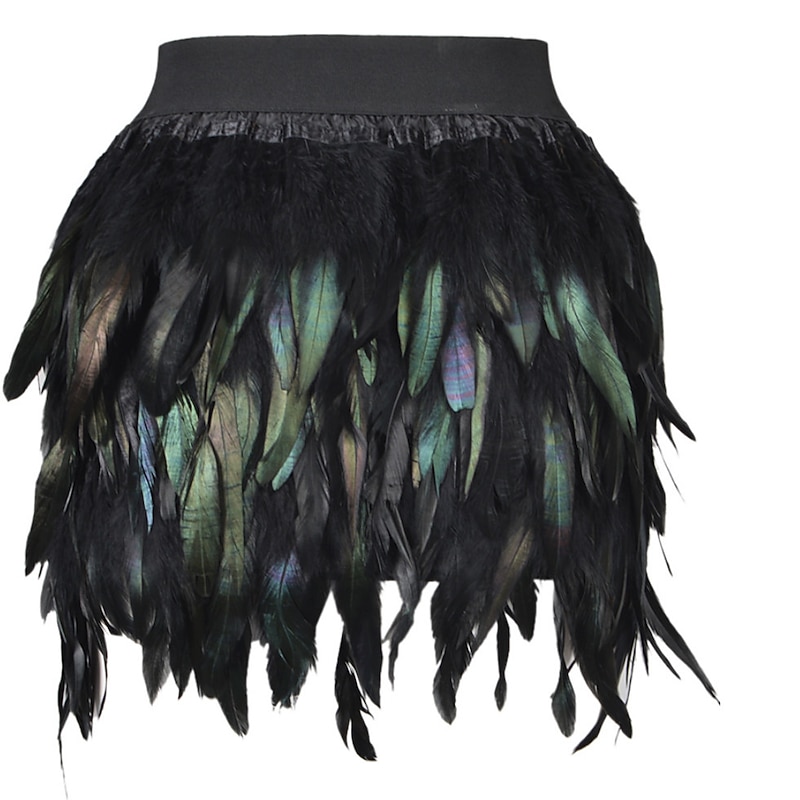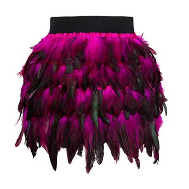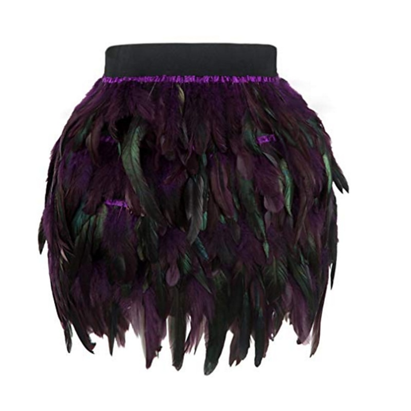Highlights [Fabric] : Crafted from high-quality polyester, this mini skirt offers a comfortable and durable wear, perfect for the fall and winter seasons. The fabric allows for a sleek and smooth feel, keeping you stylish and at ease throughout any event. [Fit] : The skirt features a regular fit that flatters various body types, providing a versatile and chic option for your wardrobe. Its mini length adds a youthful and trendy touch, ideal for those looking to make a fashion-forward statement. [Design Highlights] : This skirt stands out with its vibrant color block and solid-colored pattern. The dynamic black and purple feather detailing adds a bold, playful element, making it an eye-catching piece perfect for special occasions. The design incorporates a modern, stylish appeal, ensuring you turn heads wherever you go. [Occasions] : Suitable for a variety of events, this skirt is perfect for homecoming, carnival celebrations, vacations, parties, and even casual daily wear. Whether you’re attending a Valentine's Day dinner or a Halloween party, this skirt adds charm and flair to any situation. [Size Range] : Available in sizes S, M, L, and XL, this mini skirt caters to a broad range of body shapes and preferences, ensuring a perfect fit for every fashion enthusiast seeking a unique style.