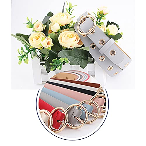 Womens PU Leather Belt for Jeans Dress Punk Vintage Studded Grommet Belt with Circle Metal Buckle 5
