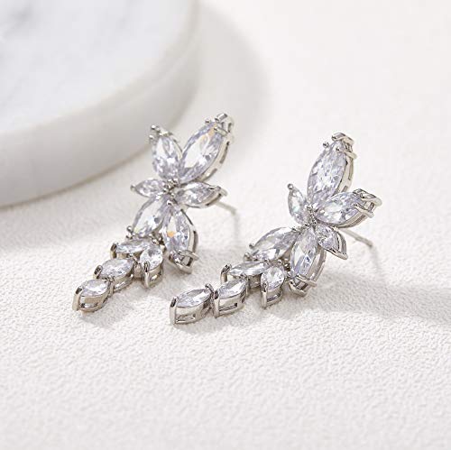 HOT ! SWEETV Marquise Cubic Zirconia Bridal Earrings, Elegant Wedding Earrings for Brides Bridesmaids, Crystal Formal Drop Earrings for Women Jewelry Gifts