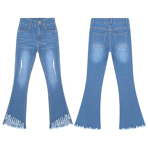 Aislor Kids Girls Ripped Tassel Bell Bottom Jeans Wide Leg Distressed Denim Pants Flare Denim Trousers with Pockets 6