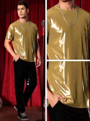 More information about Lars Amadeus Metallic T-Shirt for Men's Crew Neck Short Sleeves Party Sparkly Shiny Tee Tops