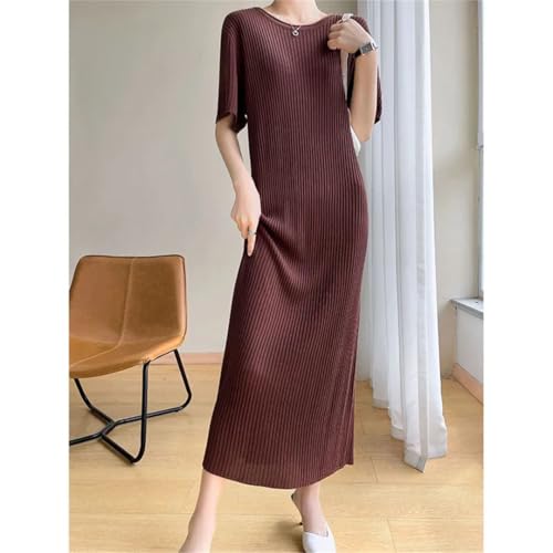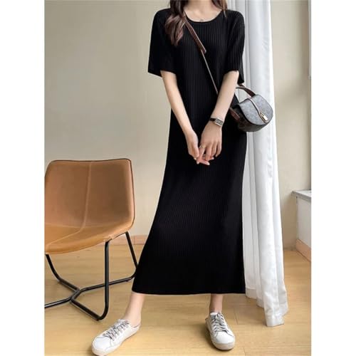 HOT ! Women's Spring and Summer Solid Color Half Sleeves Round Neck Wool Knitted Long Skirt