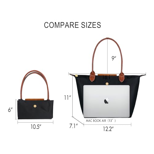 • Comfortable Shoulder Carry & Secure Zipper Closure: With its long, durable handles, this tote bag is designed for easy and comfortable shoulder wear, making it ideal for both daily commutes and extended travels.Keep your belongings safe and sound with the secure zipper closure,Crafted from high-quality, water-resistant nylon, this tote bag is built to last.ensuring that your items, from tech gadgets to personal essentials, are protected at all times.