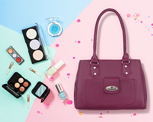 CREEPER Women's Leather Large Capacity Shoulder Bags, Maroon, M 1