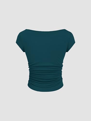 CIDER Women Ruched Crop Top Cap Sleeve Tee Boat Neck Fitted T Shirts 7