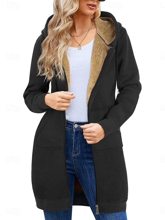 $43.99 - Women's Winter Coat Sherpa Jacket Comfortable Breathable Pocket Casual Plain Vacation Street Casual Daily Wear Zipper Long Hooded Regular Fit Long Sleeve Outerwear Black Wine Navy Blue Spring Fall 2025. Shop for cheap Fleece-Lined Jackets online? Buy at lightinthebox.com on sale today!