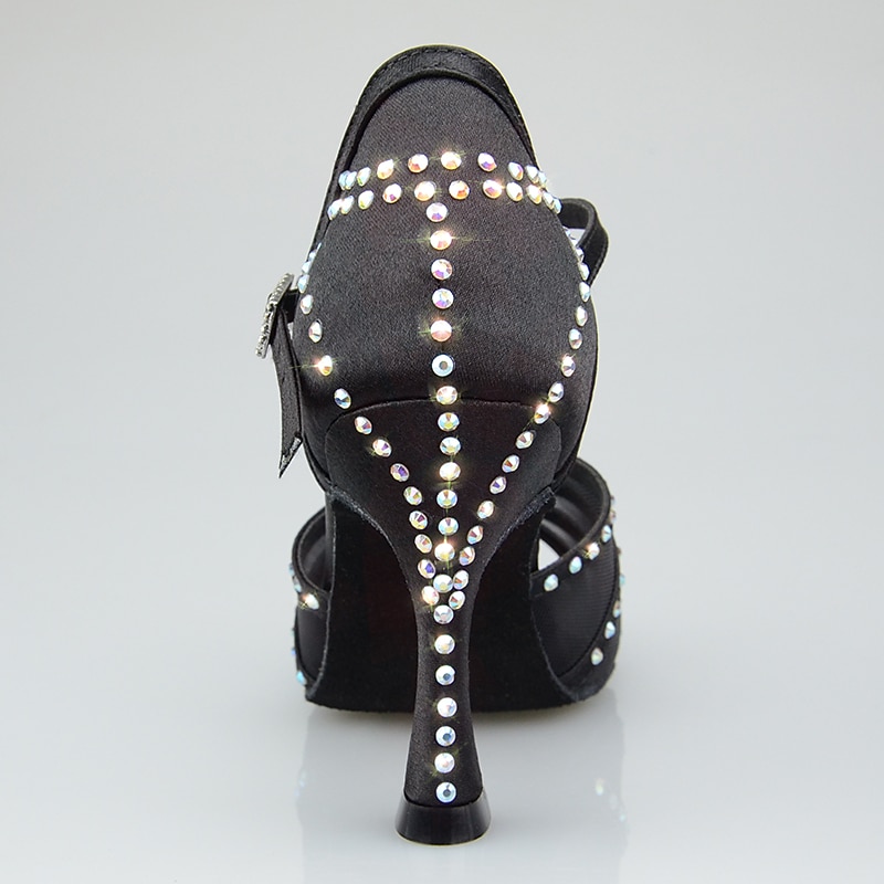Women's Rhinestone Latin Dance Shoes with Soft Suede Sole – Elegant Satin T-Strap Ballroom Heels for Salsa, Tango, Bachata & Performance Events 4