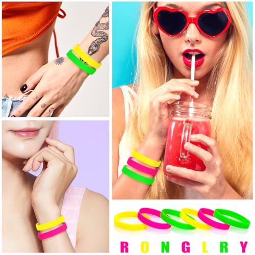 More information about Ronglry 30pcs Neon Bracelets 80s Silicone Friendship Bracelet Bulk Colorful Silicone Wristbands Stretch Neon Bracelets for Glow Party Halloween Costume Accessories 80s Jewelry for Women Men