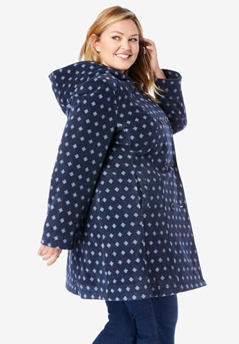 HOT ! Woman Within Plus Size Double-Breasted Hooded Fleece Peacoat