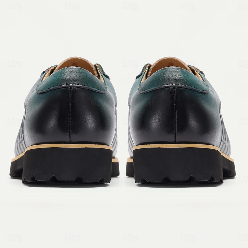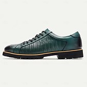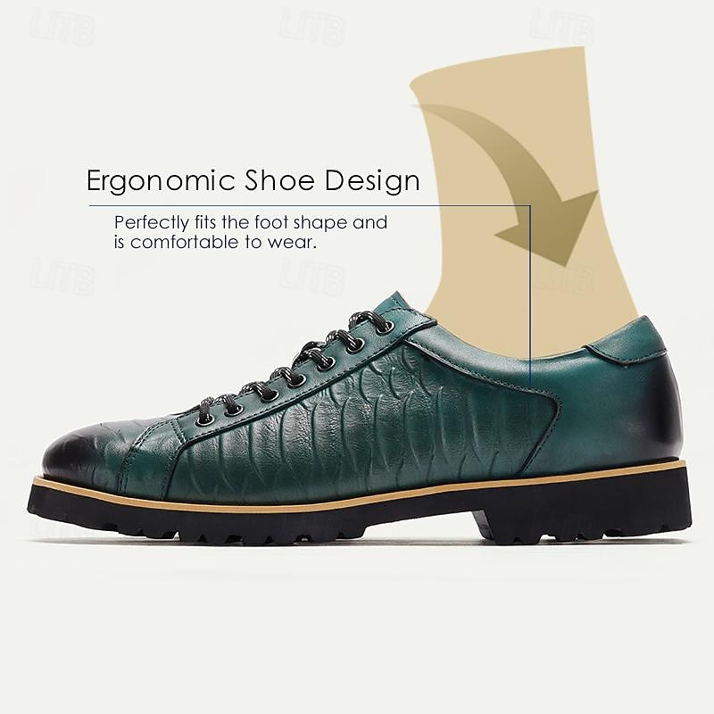 More information about Men's Dress Sneakers Green Leather Black Toe Cap Rugged Sole