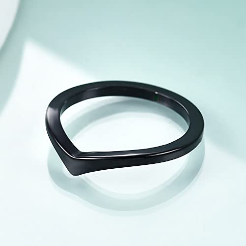 MYNENEY Pointed Classical Simple Plain Promise Ring,Stainless Steel Thin Wedding Band Rings For Women 6