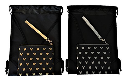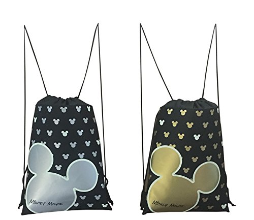 • 2 Drawstring Backpacks that Glow in the Dark - Silver and Gold Micky Head