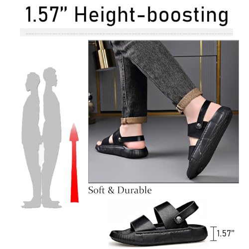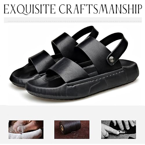 Men's Leather Platform Sandals with Adjustable Dual Use Ankle Straps Casual Comfort Open Toe Anti-Slip Soft Bottom Slip-On Slides Summer Outdoor Indoor Beach Water Shoes 4