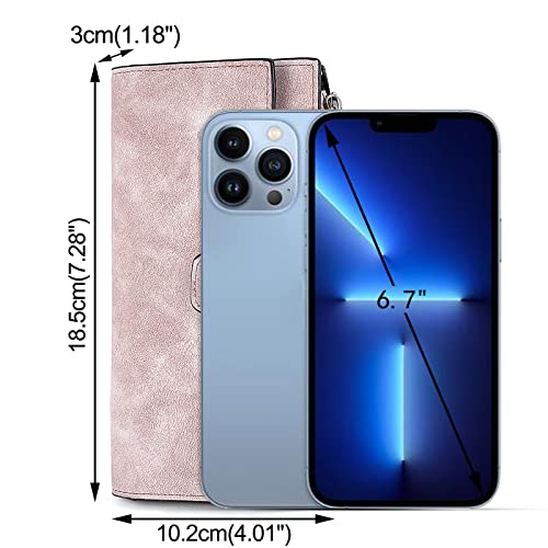 UTO RFID Wallet for Women PU Matte Leather Card Holder Organizer Zipper Coin Purse with Snap Closure Pink 7