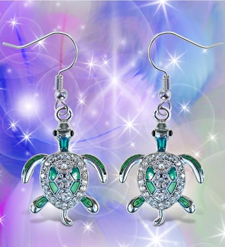 • THE TURTLE EARRINGS COMES WITH UNIQUE DESIGN YOU WILL LOVE - Make a glittery fashion statement everywhere you go with these stylish Sea Turtle Charm Sparkling Earrings. Made with premium-quality materials, they come with a sparkly design and rhinestones, featuring a cute turtle with intricate details and silver and green rhinestone crystals. Ideal hanging turtle earrings for women to complement beach outfits, daily wear, and special occasions.