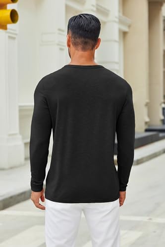 • BASIC HENLEY DESIGN: The casual henley t shirt for men featuring 3 featured buttons placket closure, long sleeve, crewneck, solid color, strong well stitching. The henley's distinctive texture adds old-school vibe give you the added benefit of instant appeal