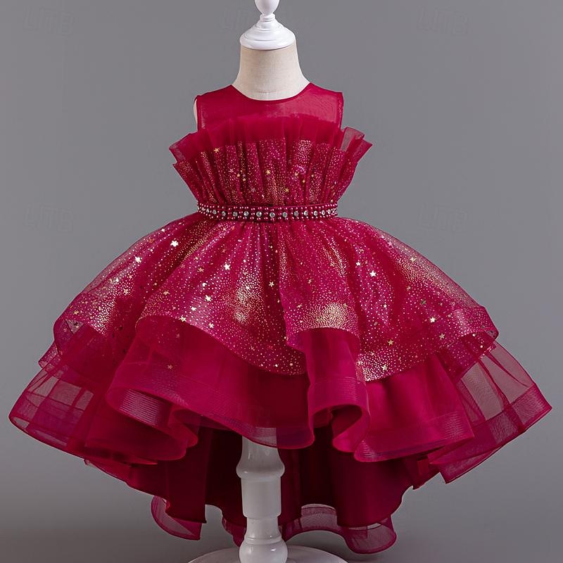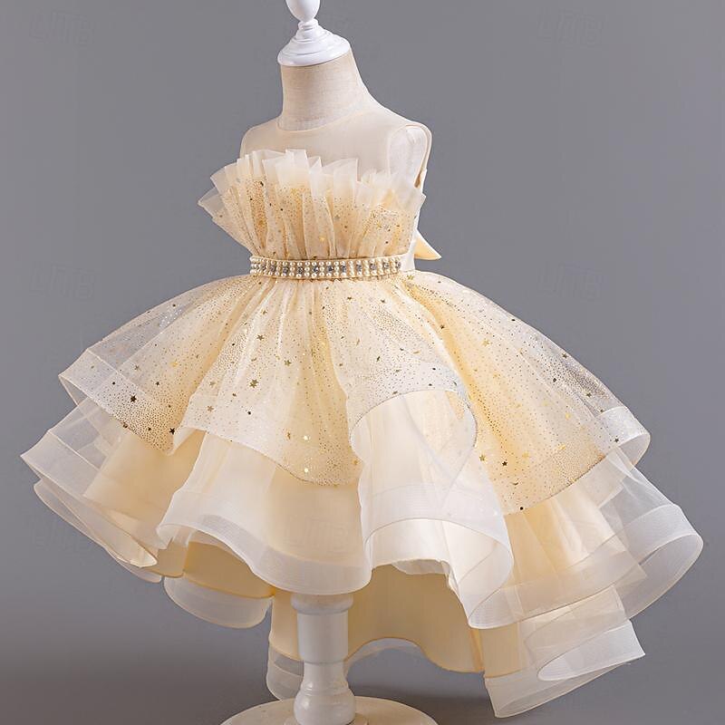 More information about Kids Girls' Flower Girl Dress Party Dress Sequin Sleeveless Wedding Party Special Occasion Sequins Mesh Adorable Sweet Cotton Polyester Asymmetrical Party Dress Summer Spring Fall 4-13 Years White