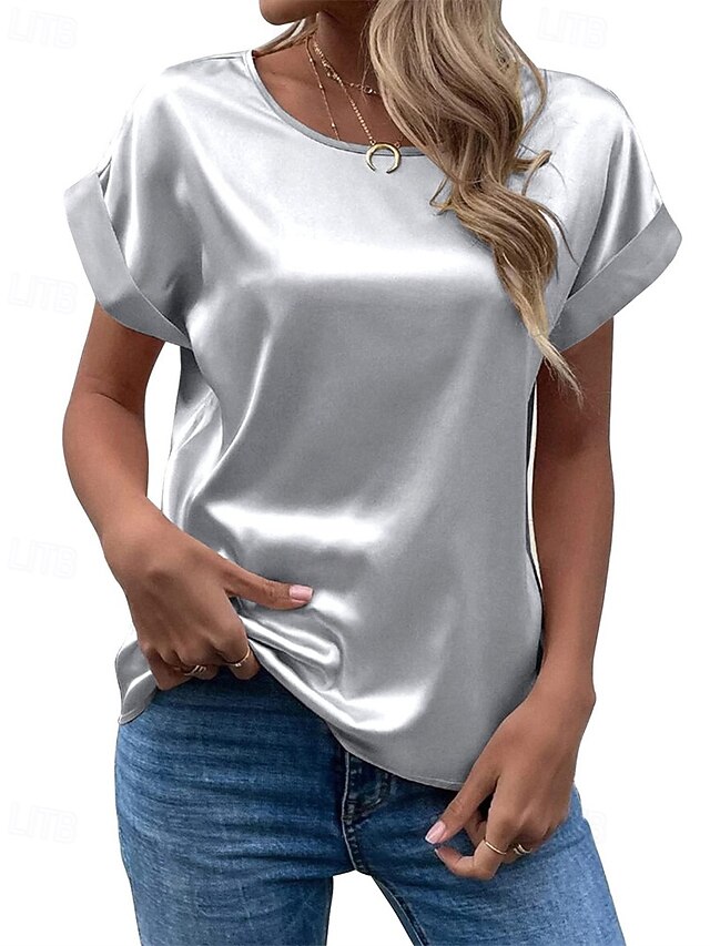 More information about Women's T Shirt Tee Top Satin Plain Fashion Modern Short Sleeve Crew Neck Regular Tops Daily Going out Weekend Light Green Dark Green Purple Light Grey Summer