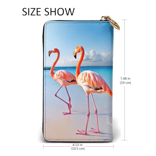HOT ! Flamingo On Beach Wallet For Women Men Clutch Rfid Blocking Leather Wallets Large Capacity Purse Credit Card Holder Money Case With Zipper Phone Holder Long Travel Purse
