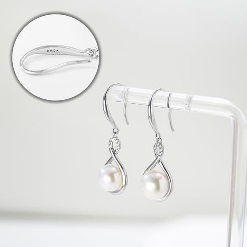 Immobird Sterling Silver Dangle Earrings for Women Freshwater Pearl Earrings Dainty Moonstone Opal Earrings Dangling Infinity Earrings for Wedding 6