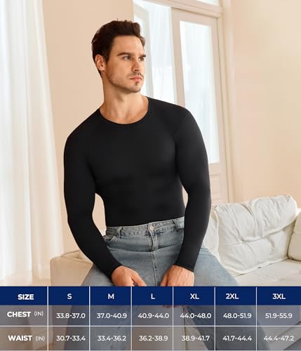 • SCULPT & SUPPORT MUSCLES: Engineered with 4-way stretch fabric, our compression shirt men long sleeve hugs like a second skin for muscle definition. Provides targeted support during weightlifting or intense workouts, enhancing your physique both in and out of the gym. Move freely while looking stronger and more sculpted instantly