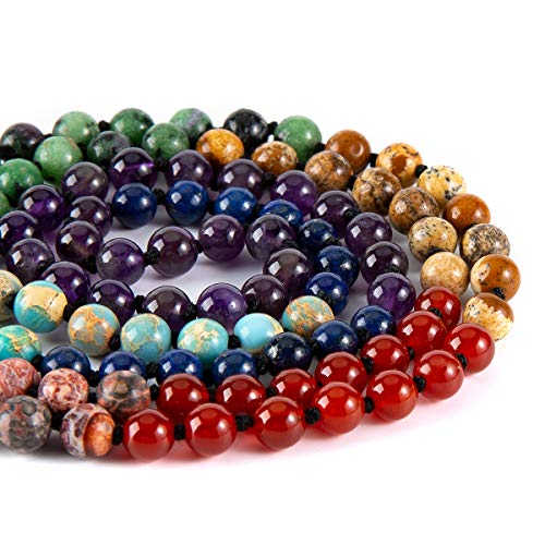 • [7 CHAKRA MALA BEADS] - Chakra is any center of subtle body believed to be psychic-energy centers. The 7 chakra reiki healing crystal yoga balancing meditation bracelet/necklace will surely help you with energy flow. Aura balancing. The bracelet will surely help you in opening and balancing your chakras and will boost up the positive growth in all aspect in real quick.