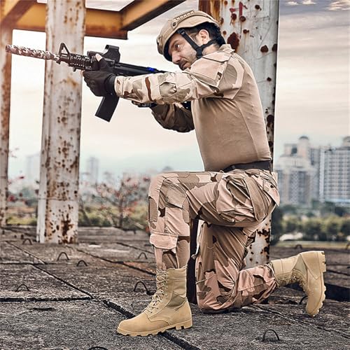 Men's Suede Leather High Top 8 Inch Lace Up Military Tactical Boots for Work Jungle Outdoor Lightweight Combat Motorcycle Booties Police Army Shoes 7