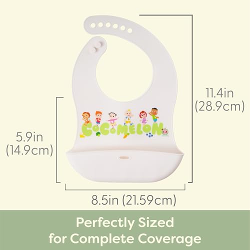 CoComelon Silicone Bibs for Babies with Adjustable Neck - Durable Baby Silicone Bibs - Baby Bib with Food Catcher Pouch for Mess-Free Meal Time - Baby Led Weaning for Boys and Girls 6