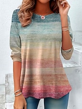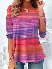 More information about Women's T Shirt Graphic Striped Vintage Stylish Classic Long Sleeve Crew Neck Regular Tops Daily Print Yellow Pink Blue Spring Fall Winter