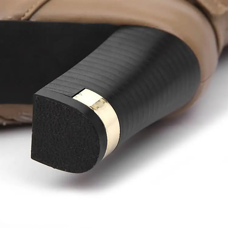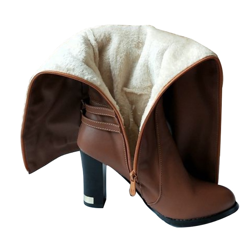 Women's Knee-High Heeled Boots with Buckle Detail and Warm Plush Lining - Stylish Winter Footwear for Casual and Formal Wear 12