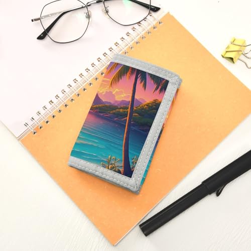 HOT ! Coconut Sea Sunset Orange Kids Wallet for Boys Girls Trifold Sport Outdoor Wallets for Youth Teen Child Wallet with Zippered Coin Pockets Card Holders Novelty Wallets with Magic Sticker
