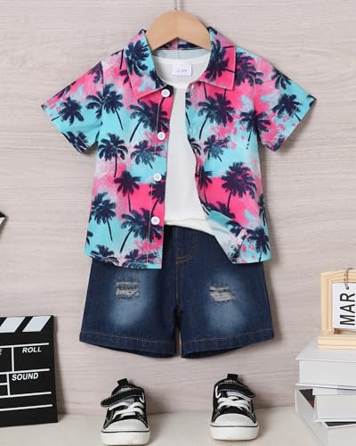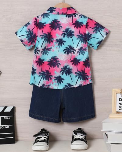 Coco&RARA Toddler Baby Boy Clothes Summer Beach Outfits Hawaiian Short Sleeve Button Down Shirts+Denim Shorts Casual Set 1-5T 3