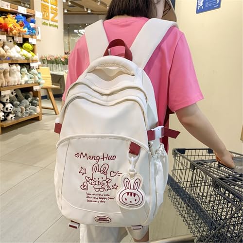 HOT ! Aesthetic Cartoon Embroidery Backpack Large Capacity Multiple Pocket School Bag Junior High College Student Book Bag