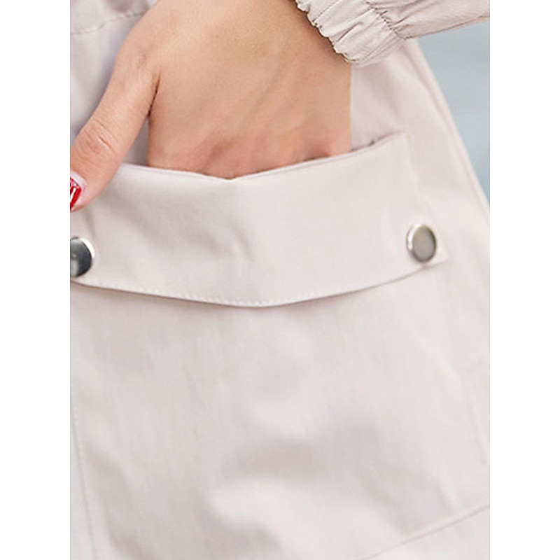 Women's Trench Coat Fall Outdoor Zipper Plain Breathable Streetwear Regular Fit Outerwear Long Sleeve Black M 7