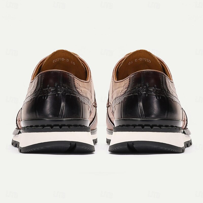 HOT ! Men's Sneakers Dress Sneakers Leather Italian Full-Grain Cowhide Slip Resistant Lace-up Brown
