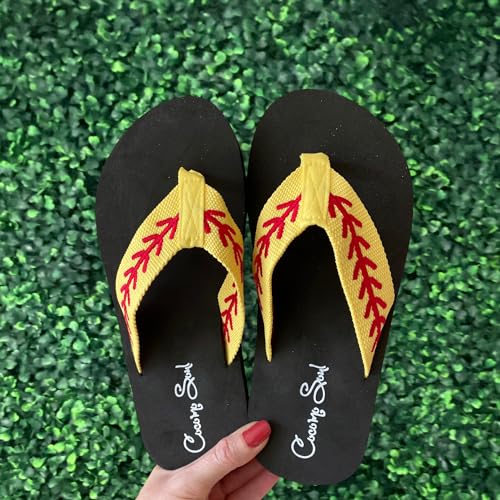 HOT ! Cocomo Soul Softball Flip Flops | Embroidered Softball Flip Flops | Softball Slippers | Softball Sandals | Softball Flip Flops for Women | Softball MOM Flip Flops