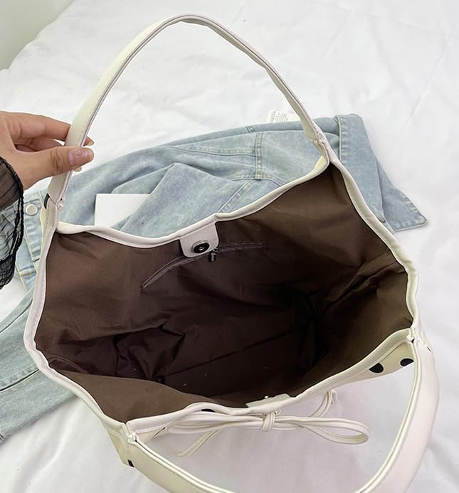 Polka Dot Hobo Bag for Women Bow Tie Canvas Handbags Shoulder Purse Large Satchel for Travel Work 5