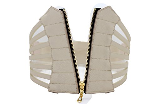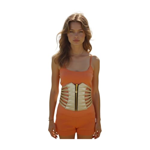 • Condition : Brand new Hot Women’s Light Gold Champagne Faux Leather Corset Belt – Wide Elastic Waistband Cincher with Gold Zipper – Fashion Statement Belt for Dresses & Jeans – Adjustable Fit S/M
