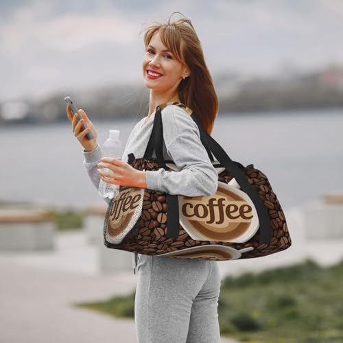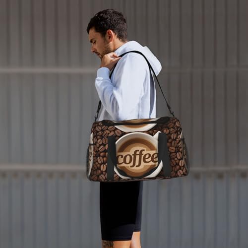 Personalized Sports Duffel Bags Gym Bag Dance Bag, Personalized Custom Travel Duffle Bag Tote Bag, Customized Travel Bag Overnight Weekender Sleepover Bags, Coffee Mug Coffee Bean 1