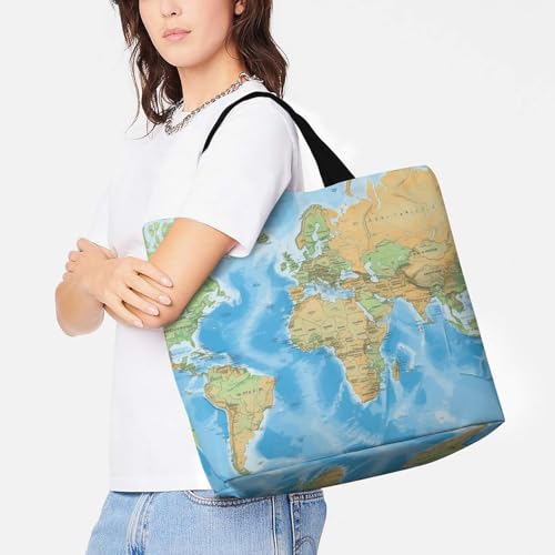 World Map Tote Bag Large Women Casual Shoulder Bag Reusable Grocery Bag Fasion Handbag for Office Shopping Travel