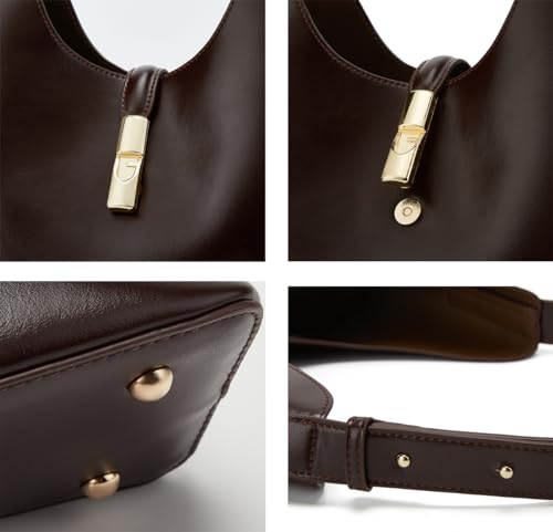 • Fashion Design: Fashion shoulder 2pcs bag, dual pouch design can be used together or separately, stylish bucket style, solid color, a vintage leather bag for lady. Delicate hobo bag pairs with any daily outfit perfectly, make your look more elegant and ensure a timeless look.