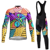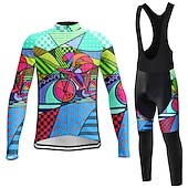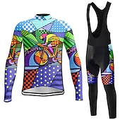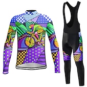 More information about Men's Cycling Jersey with Bib Tights Long Sleeve Mountain Bike MTB Road Bike Cycling Winter Violet Pink Blue Graphic Bike Clothing Suit 3D Pad Breathable Quick Dry Back Pocket Polyester Spandex Sports