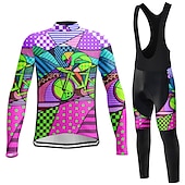 HOT ! Men's Cycling Jersey with Bib Tights Long Sleeve Mountain Bike MTB Road Bike Cycling Winter Violet Pink Blue Graphic Bike Clothing Suit 3D Pad Breathable Quick Dry Back Pocket Polyester Spandex Sports
