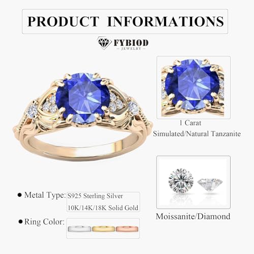 • Vintage Design: Tanzanite is the birthstones of december, often associated with transformation and spiritual growth. Its deep blue color is thought to promote calmness, creativity, and insight. This women's tanzanite ring features a 1ct round cut tanzanite in the center and adorned with small moissanite or diamond; the tanzanite ring showcases vintage design, making it an exquisite piece of jewelry