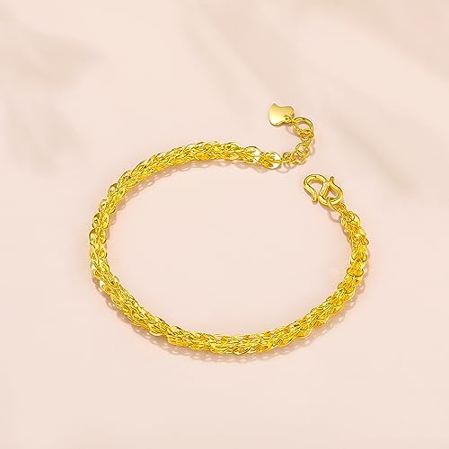 HOT ! 24K Solid Gold Bracelets for Women, Real Pure Gold Simple Dainty Jewelry Gold Chain Bracelet for Men Girlfriend Boyfriend Couples Lovers Gifts