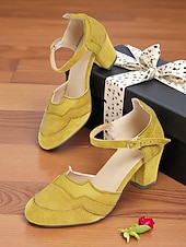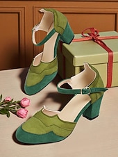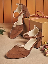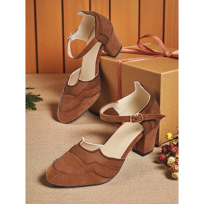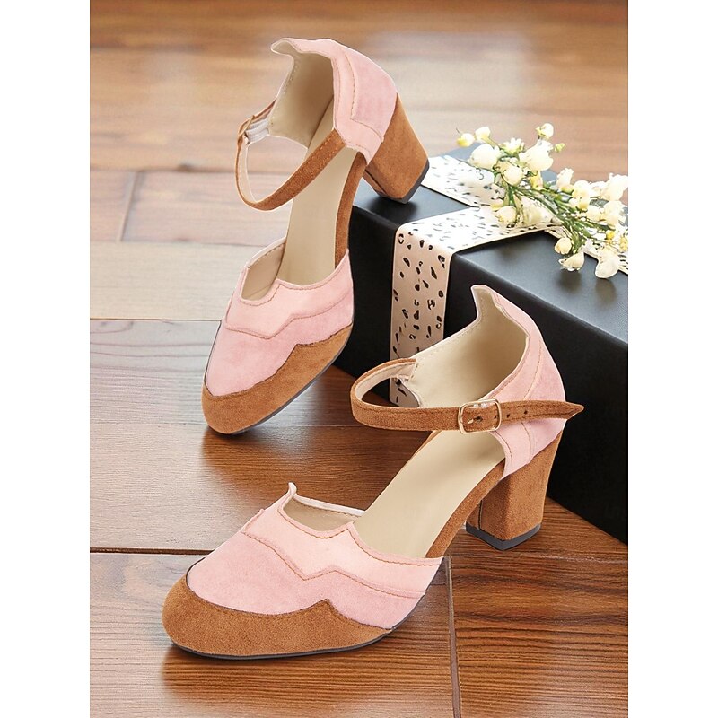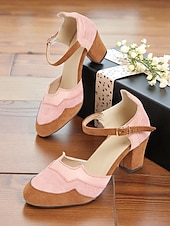More information about Women's 1920s Flapper Two-Tone Suede Mary Jane Heels – Vintage Pink and Brown Block Heel Pumps for Gatsby Parties and Retro-Themed Events