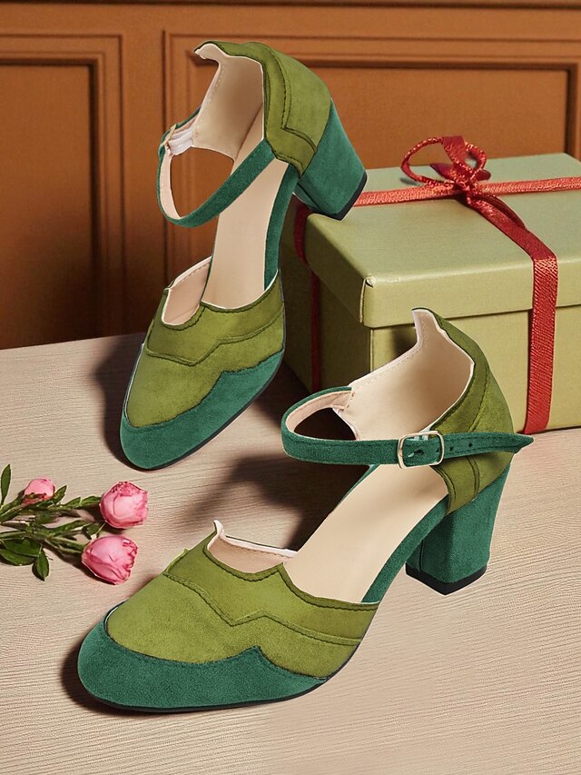 Women's 1920s Flapper Two-Tone Suede Mary Jane Heels – Vintage Pink and Brown Block Heel Pumps for Gatsby Parties and Retro-Themed Events 24