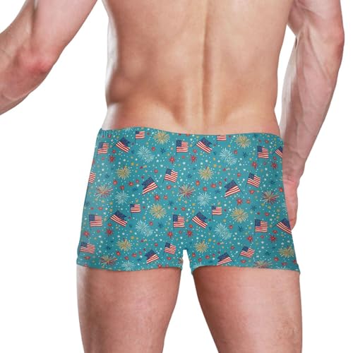 July 4th Independence Day American Flag Mens Swim Trunk Bathing Suit Swim Brief Square Leg Board Short S B0404598 2